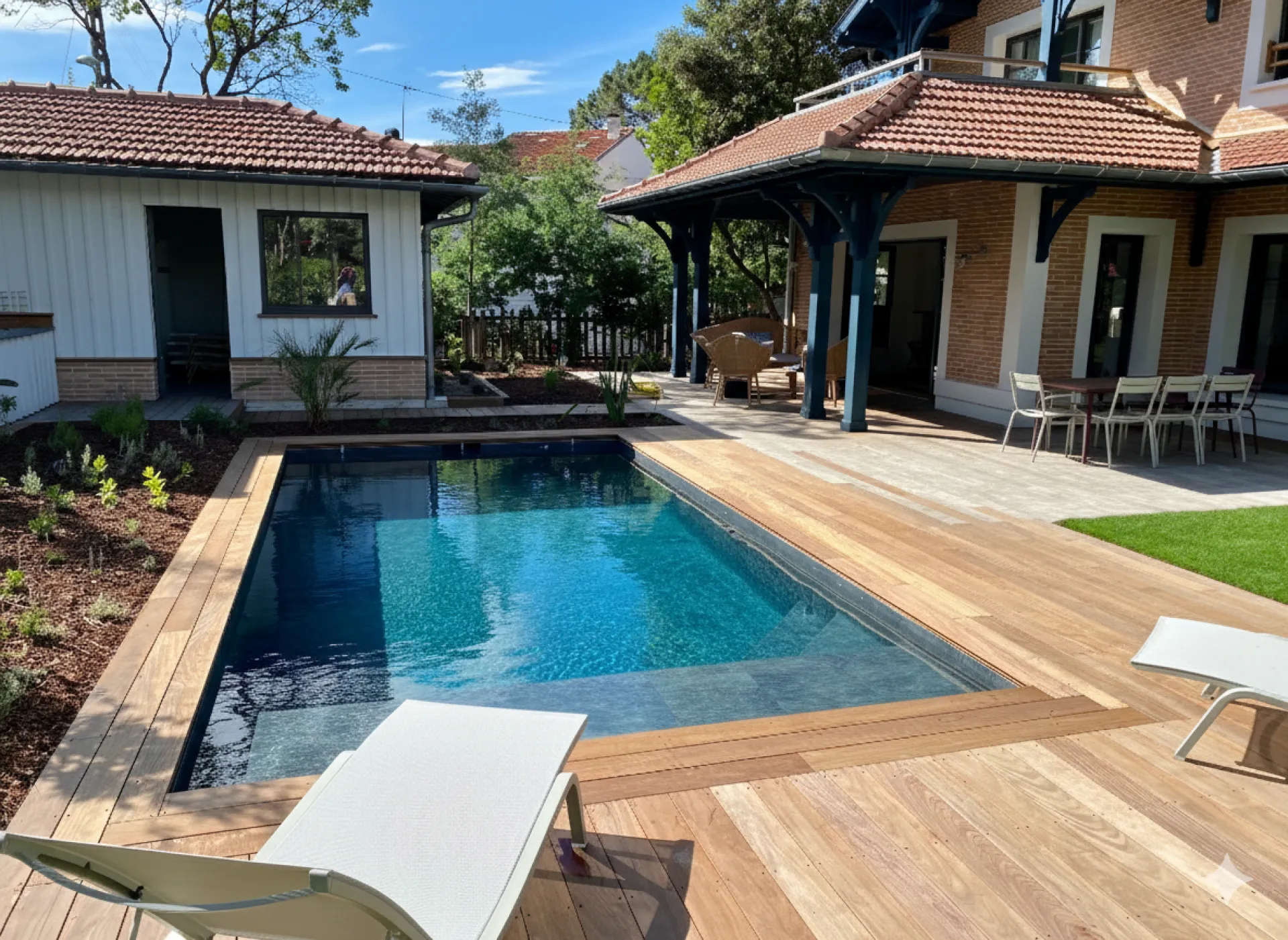 Beau projet réalisé avec Everblue-Areva Piscines. Nous sommes ravis de la piscine et de la façon dont s'est déroulé le chantier : artisans très professionnels, de bons conseils et qui ont toujours respecté les délais.